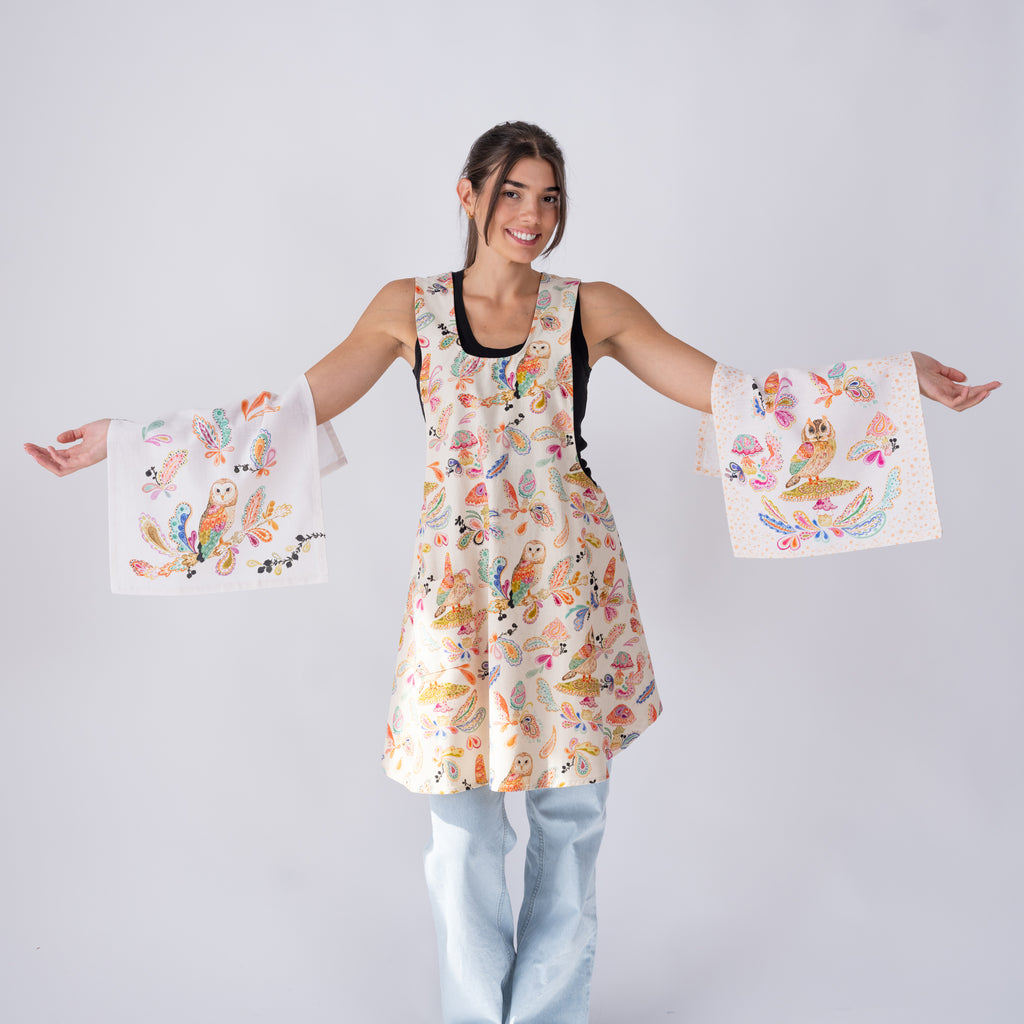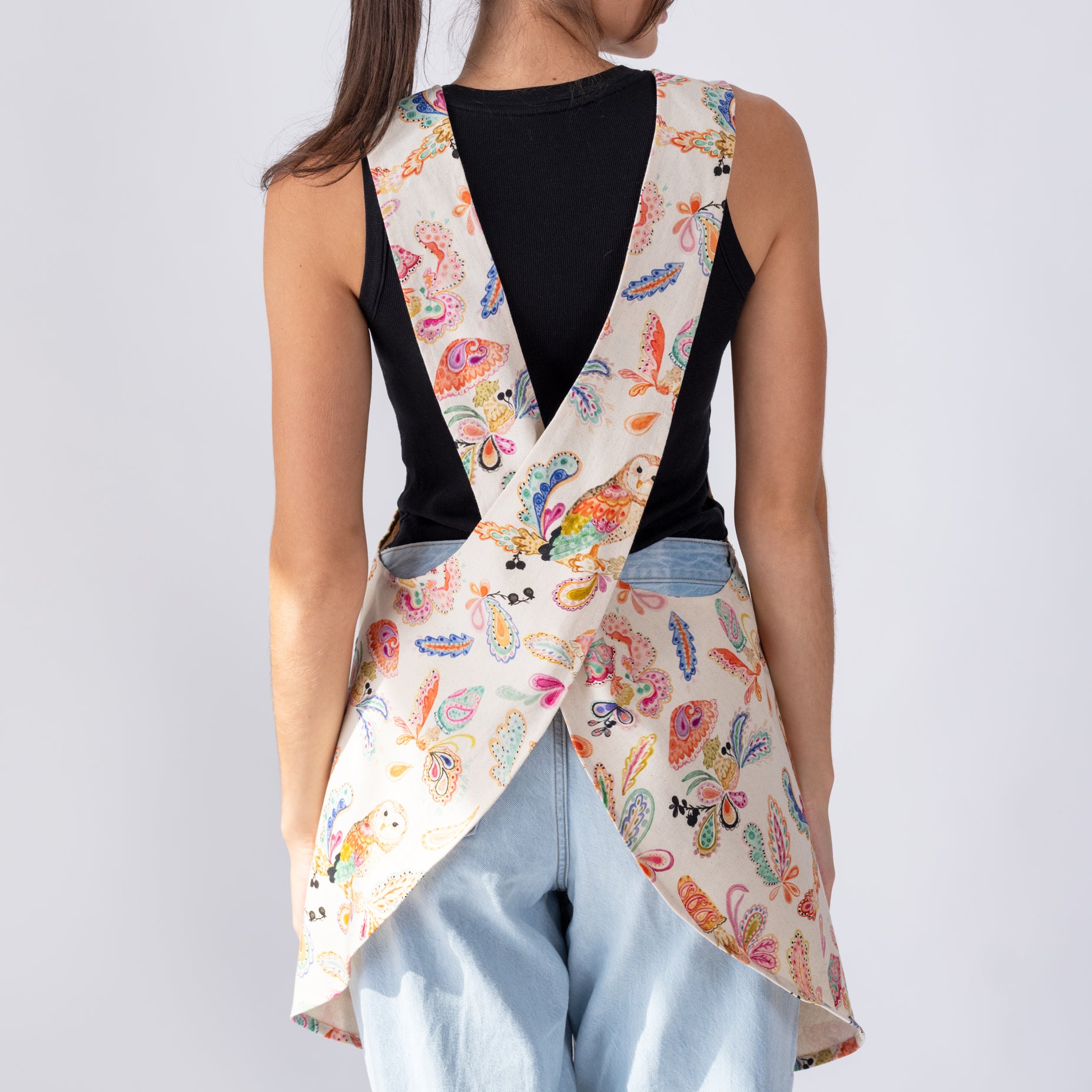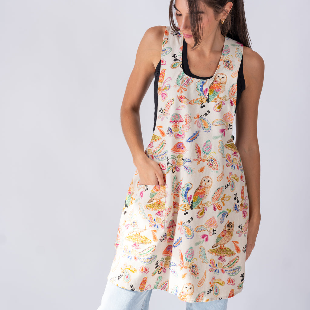 Inspired by the vintage 70’s smock, these cross back, pullover aprons are one of our bestsellers and a customer favorite. Perfect in both the kitchen and garden, the full coverage and side pocket provide comfortable protection from cooking and planting alike. Colorful and conversational, they feature Betsy’s original watercolor designs.