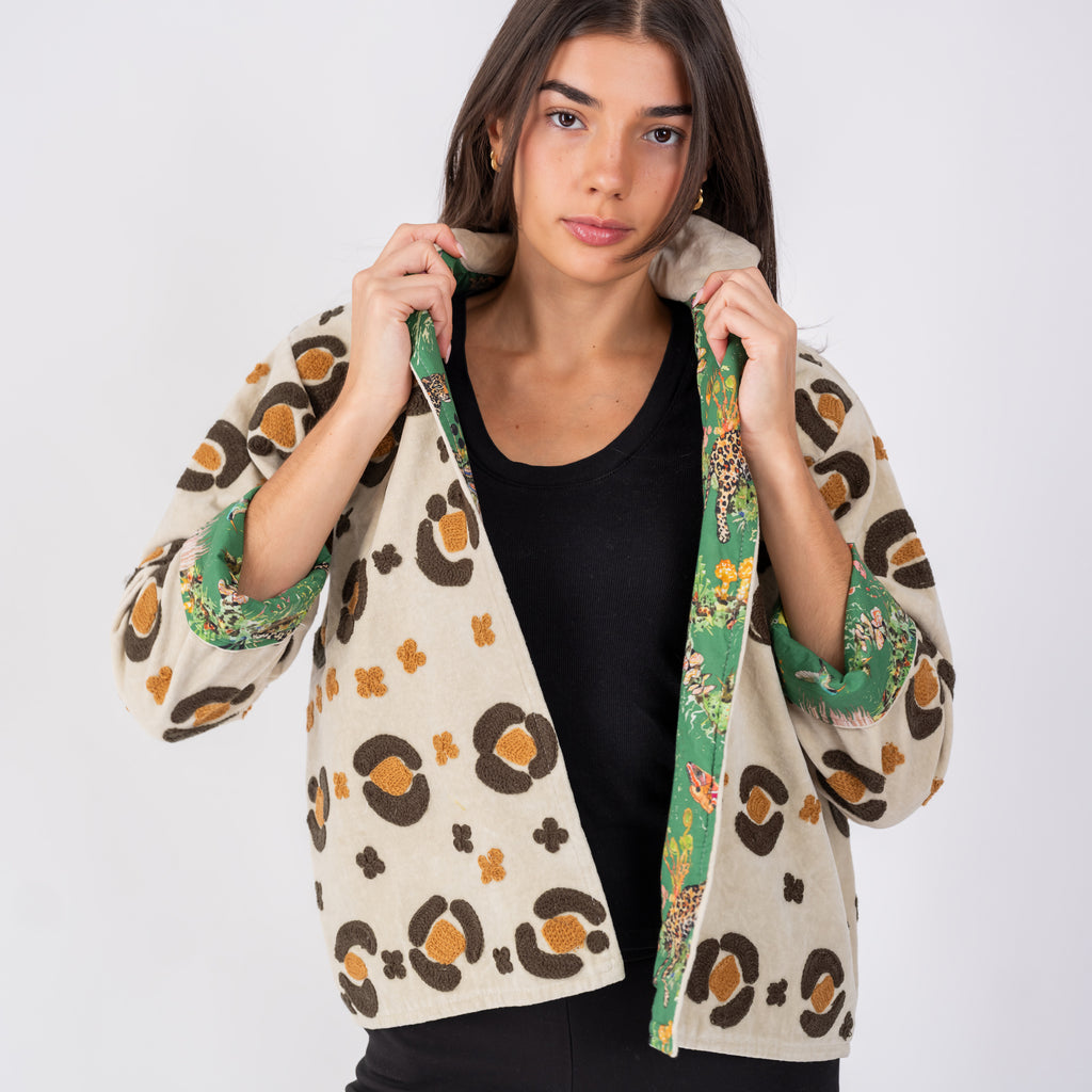 Velvet Embroidered Jacket- Felidae Tree