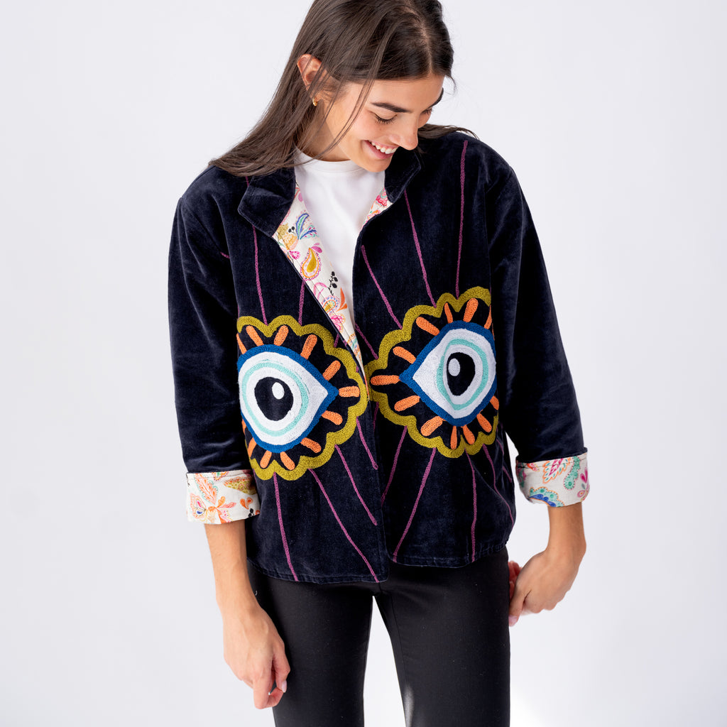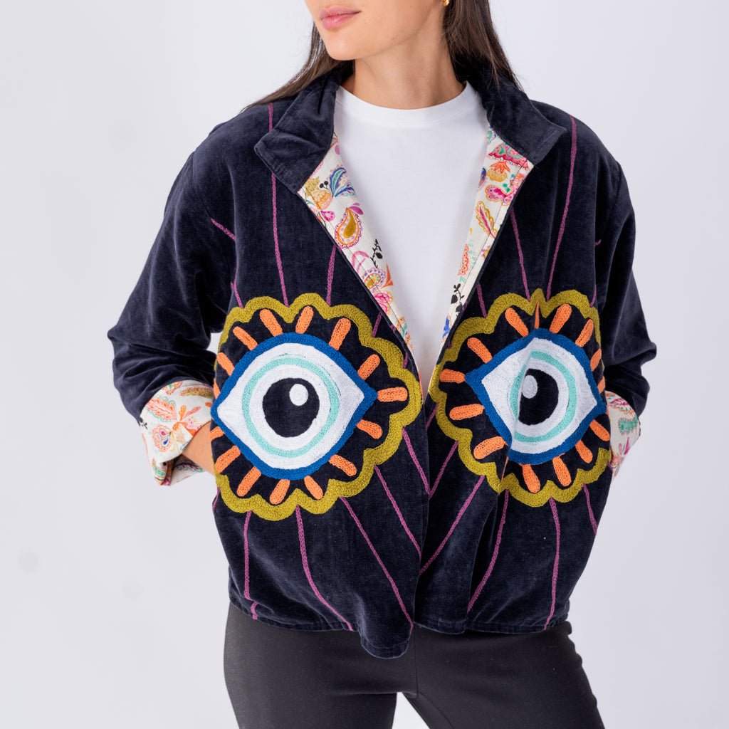 Velvet Embroidered Jacket- Eyes