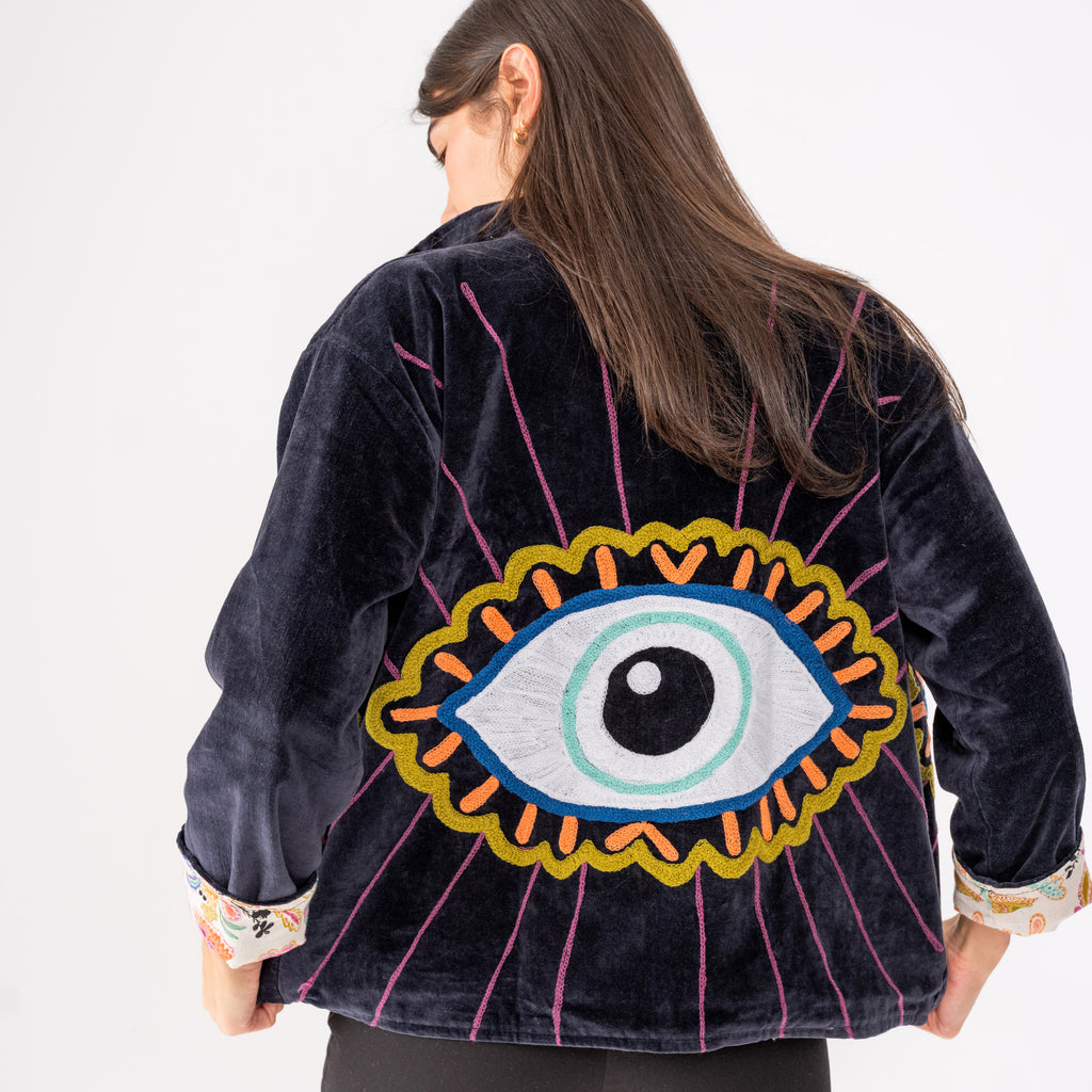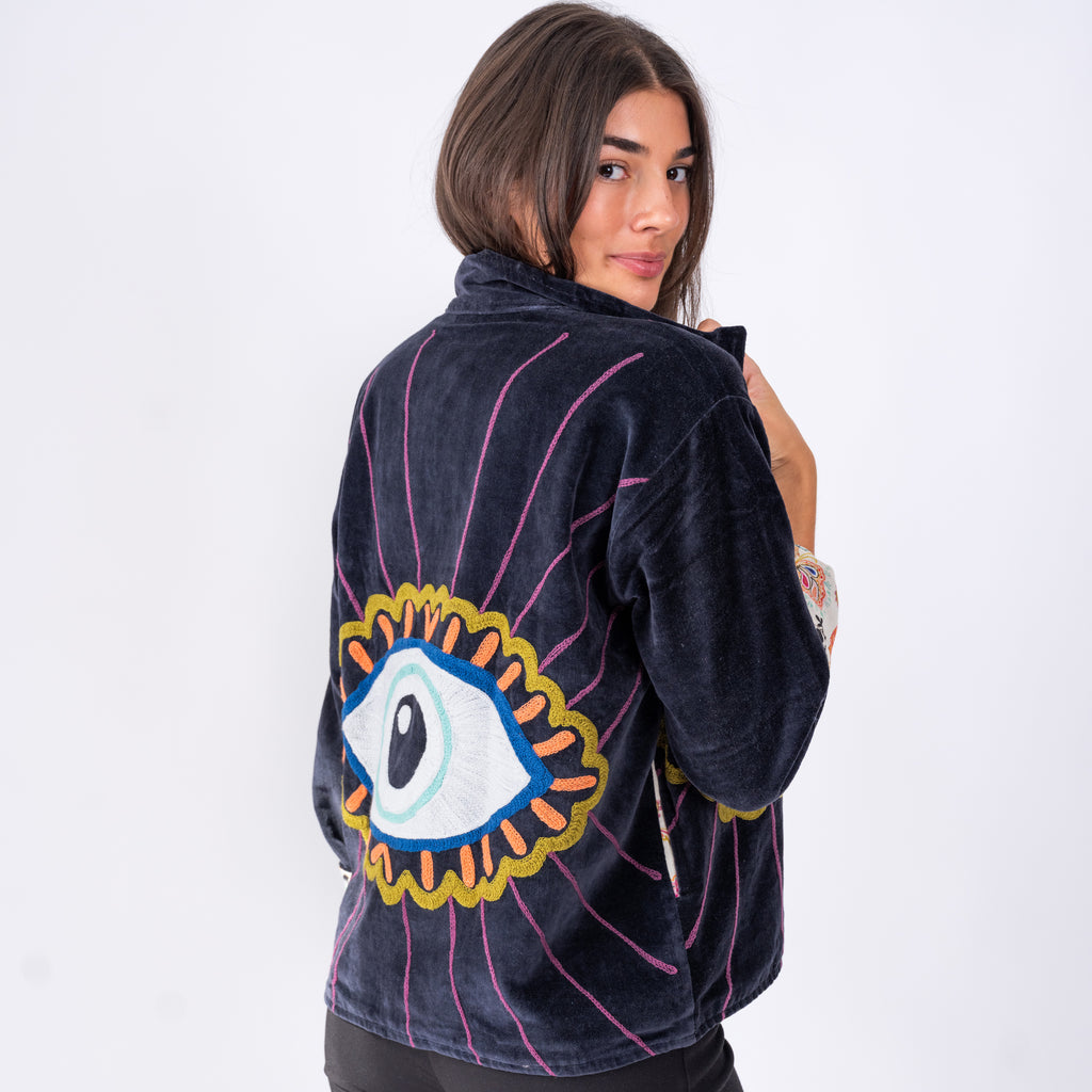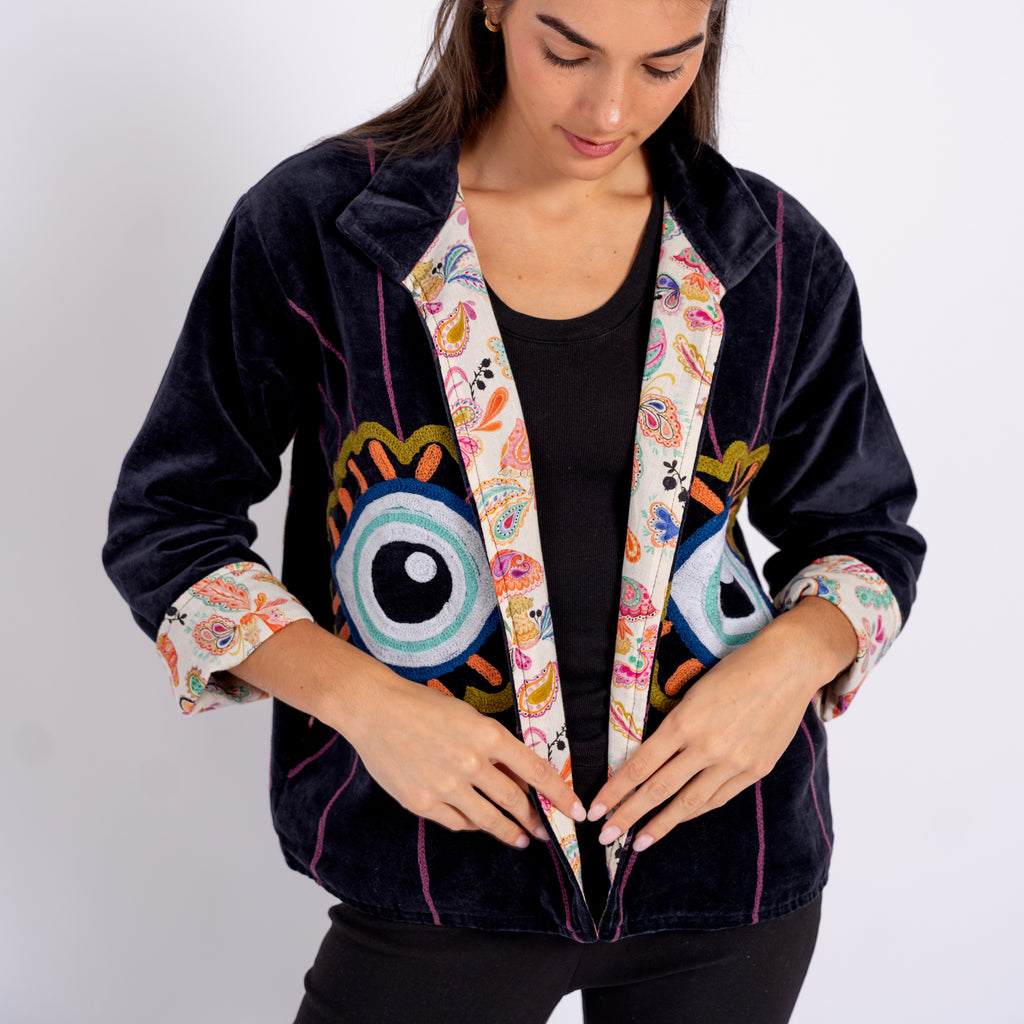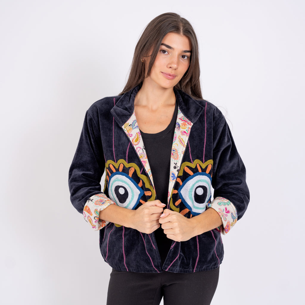 Velvet Embroidered Jacket- Eyes